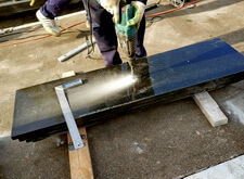 Переходим к созданию надписи. Вырубаем её на граните, затем покрывает акриловой краской. Такой вариант является отличной альтернативой покрытию сусальным золотом, который, к тому же, обходится клиенту значительно дешевле.